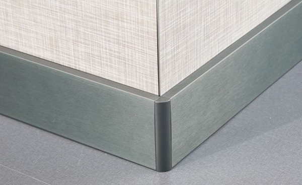 鋁合金踢腳線表面的木紋處理和實木非常貼近,具有木質踢腳線的沉著體貼,更重要的是鋁合金材質綠色環保,無毒無害,防霉防潮,施工簡單。鋁合金踢腳線廣泛應用于家居裝修使用,此外鋁合金踢腳線還有一個非常突出的優點是不褪色,相比其他金屬材質,鋁合金踢腳線因為表面有陽極氧化處理永不生銹。