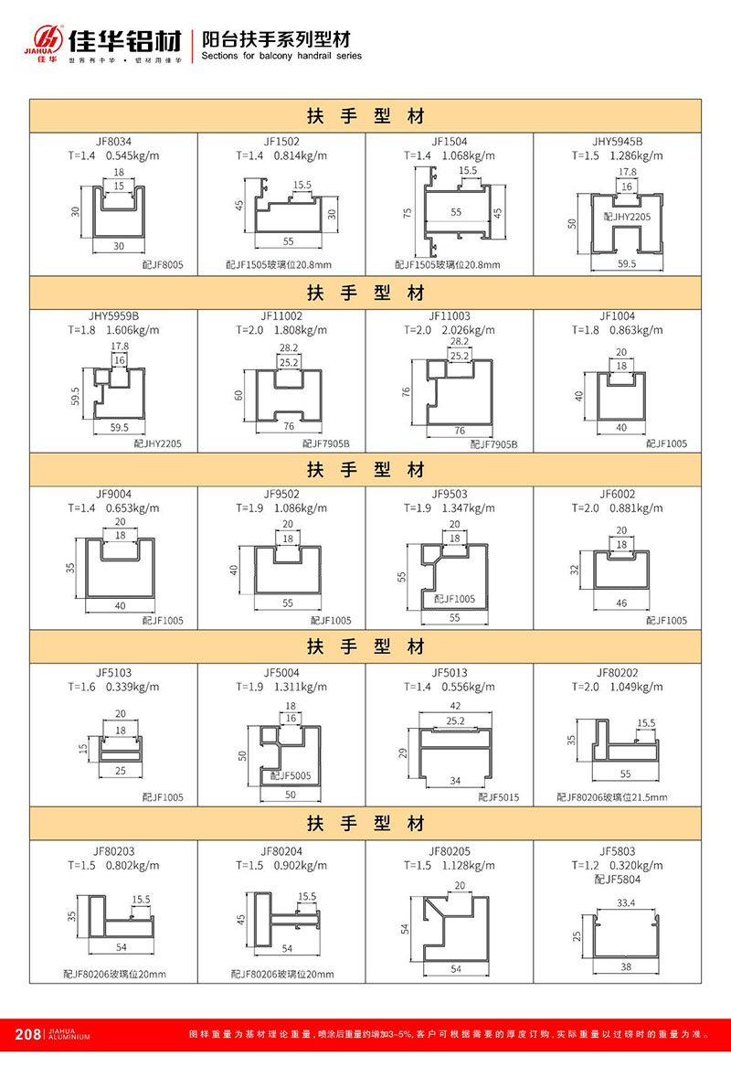 鋁型材規(guī)格型號:陽臺(tái)扶手 B