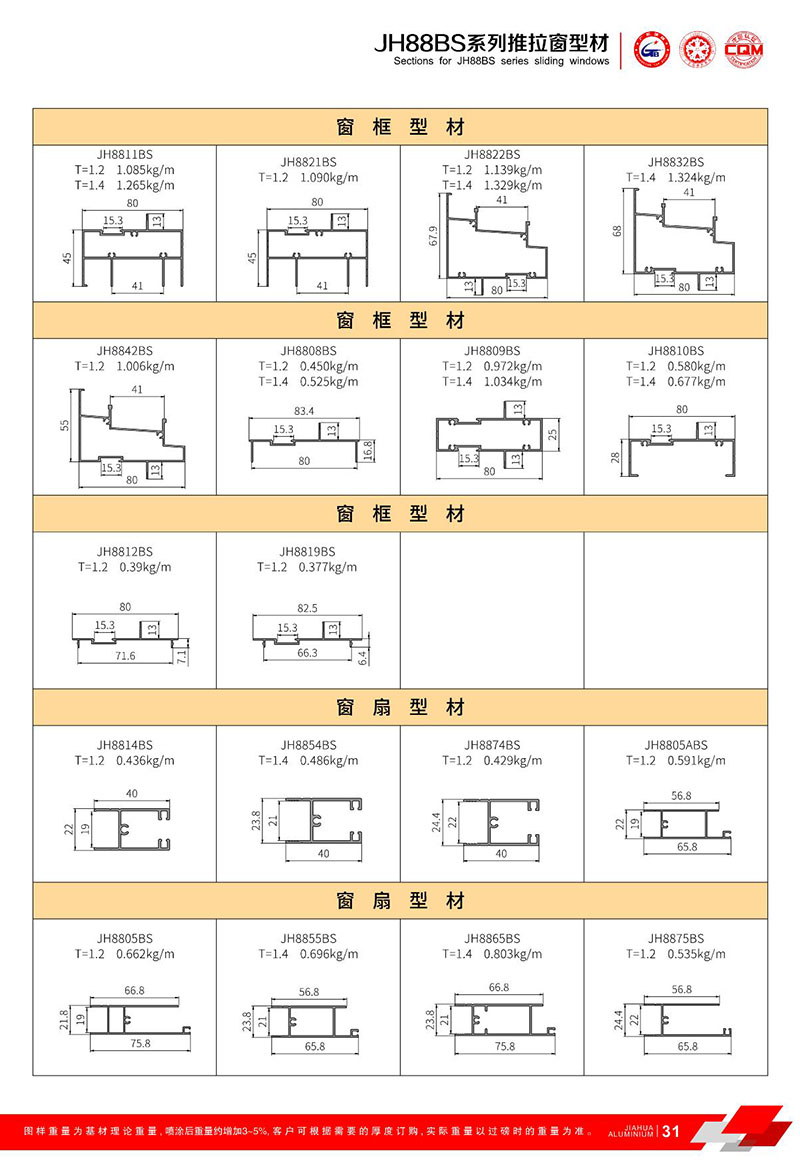 鋁型材規格型號:JH88BS