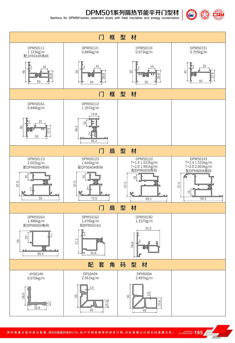 鋁型材規格型號:DPM501平開系列