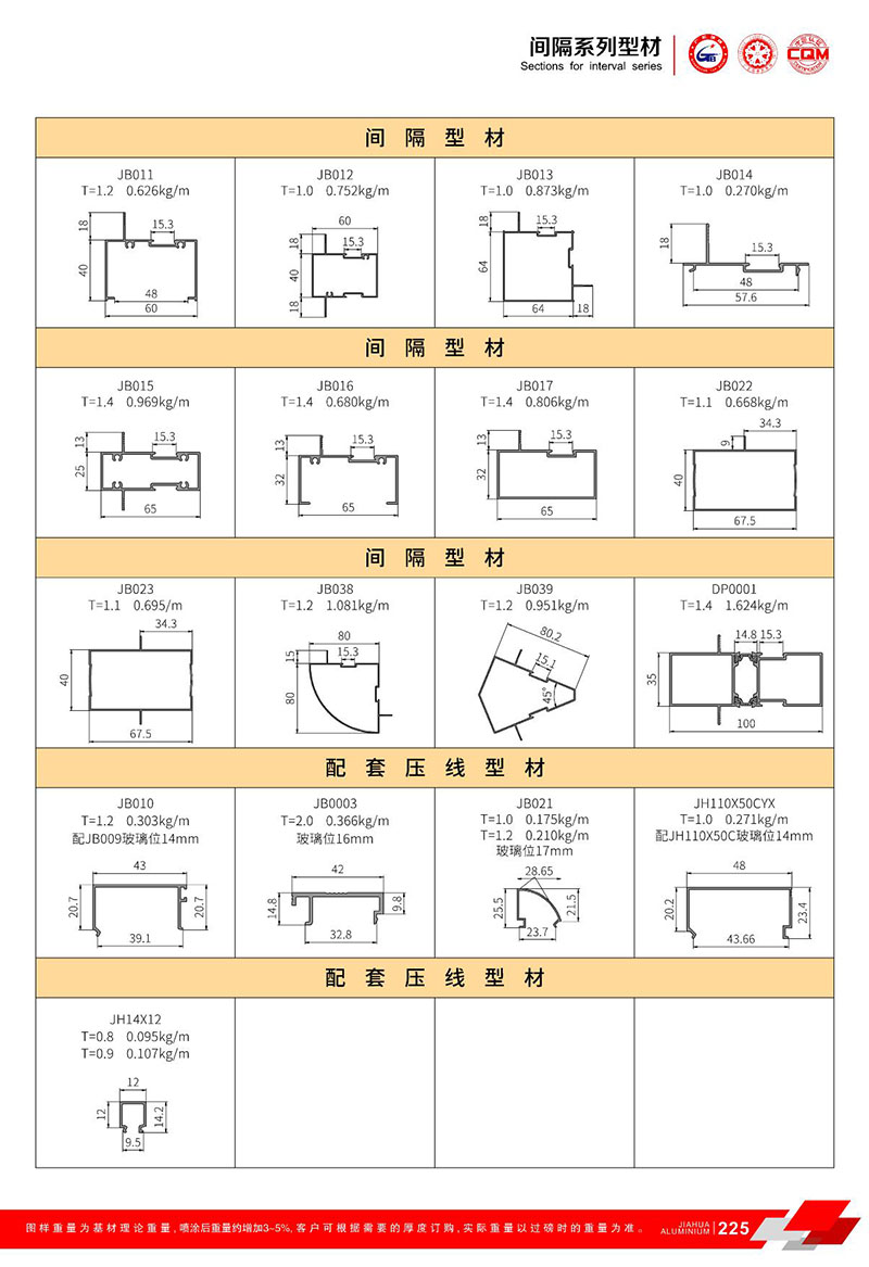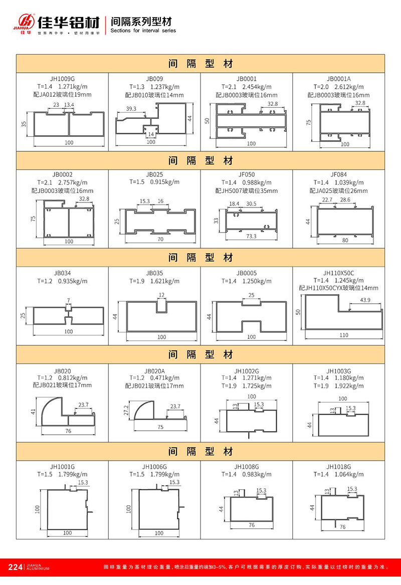 鋁型材規(guī)格型號:固定/間隔型材