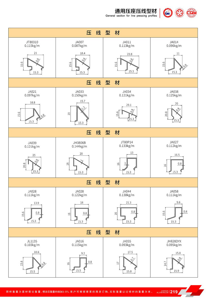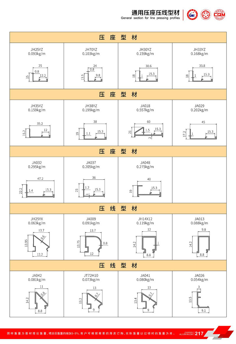 鋁型材規(guī)格型號:壓座/壓線型材