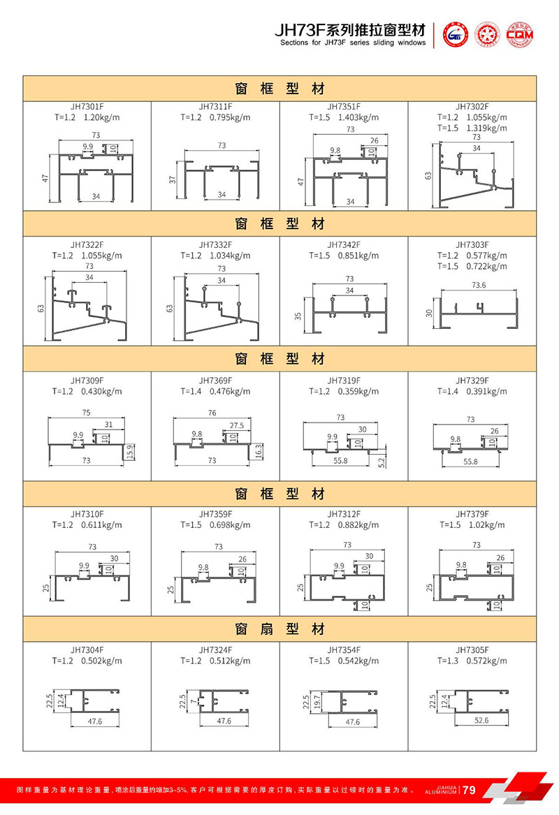 鋁型材規格型號:JH73F
