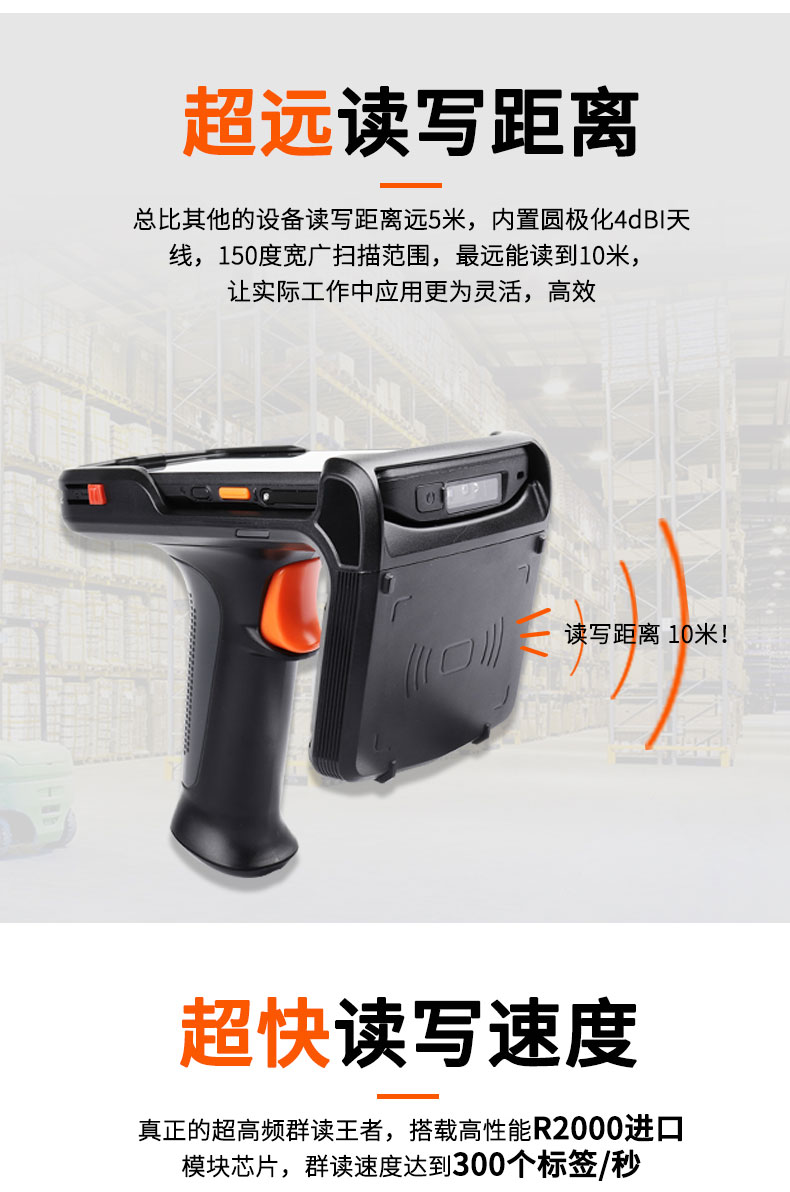睿豐厚德堅果品牌超高頻手持機終端i6310,分體設計,超高頻手柄可拆卸模式,更廣泛應用在各種場景,如東航機場行李分檢,學校RFID固定資產管理,服裝門店盤點等。